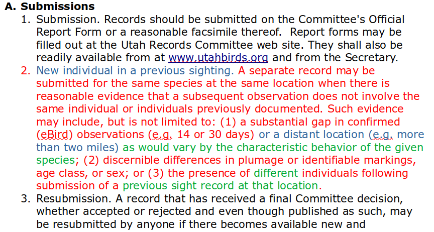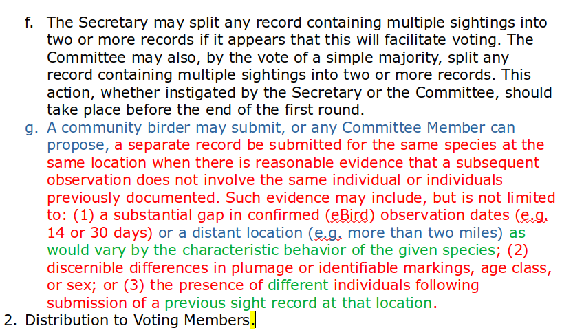 existing sight record merit a separate sighting. Jeff proposed an