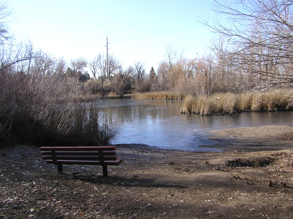 pond in a residential neighborhood. The park offers a paved path, benches,