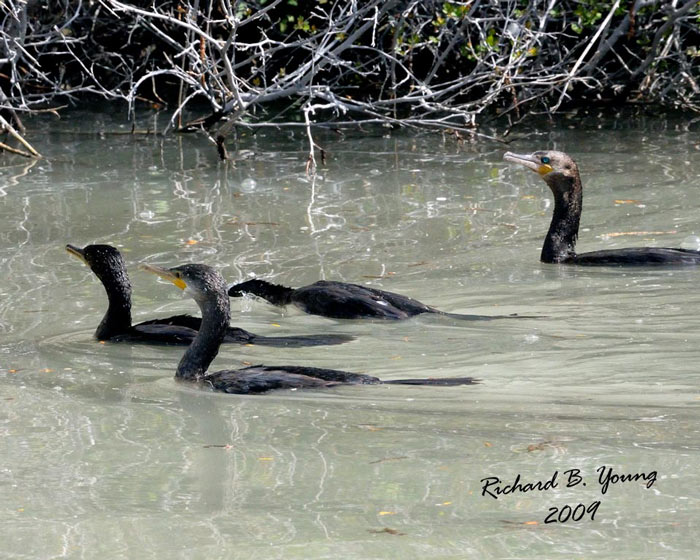 Neotropic cormorants. Mr. McIntyre suggests that, in the photo of 4 birds