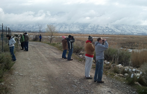 falling from the sky, 7 Utah County Birders stood on the side of the road