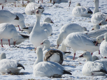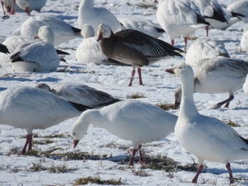Fifteen birders left Payson around 7:30 am and headed west to Delta. We passed a few Rough-legged Hawks, Red-tailed Hawks, a Golden Eagle, lots of Common Ravens, Woodhouse's Scrub Jays and Horned Larks on the way down. We arrived about 9:15 am at Gunnison Bend Reservoir and it was frozen! The DNR told us to head to 50, then 5000 then go right on 500 to 3000. On our way East on 500 we saw a huge flock flying to the South. We watched them circle about and land in the field. They were so close! We saw them without a scope this year from the warmth of the car. We counted at least 8 Ross's Geese and it was fun to have them close enough to compare with the Snow Geese. We estimated around 5000 Snow Geese! Such a beautiful sight! Everyone needs to experience this at least once.